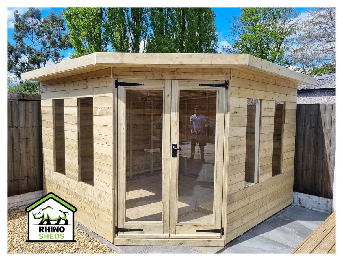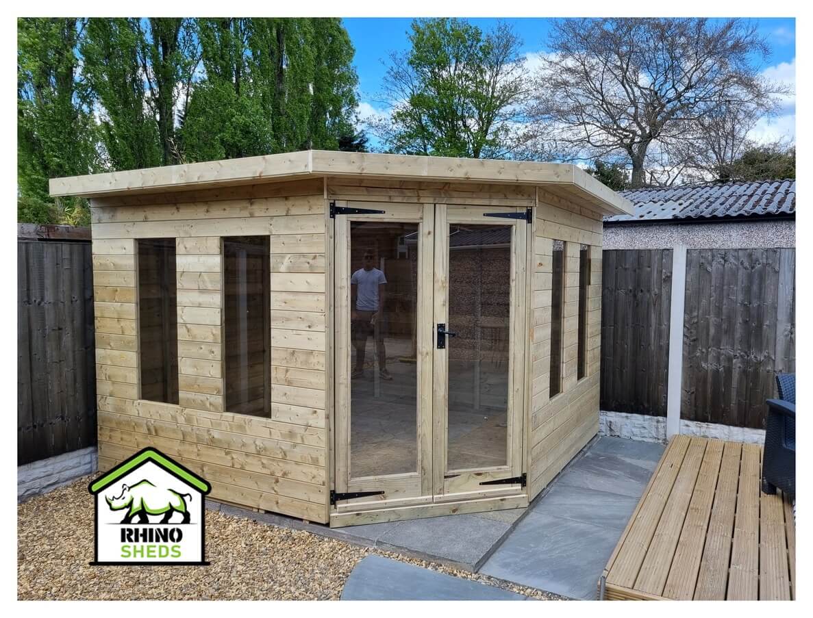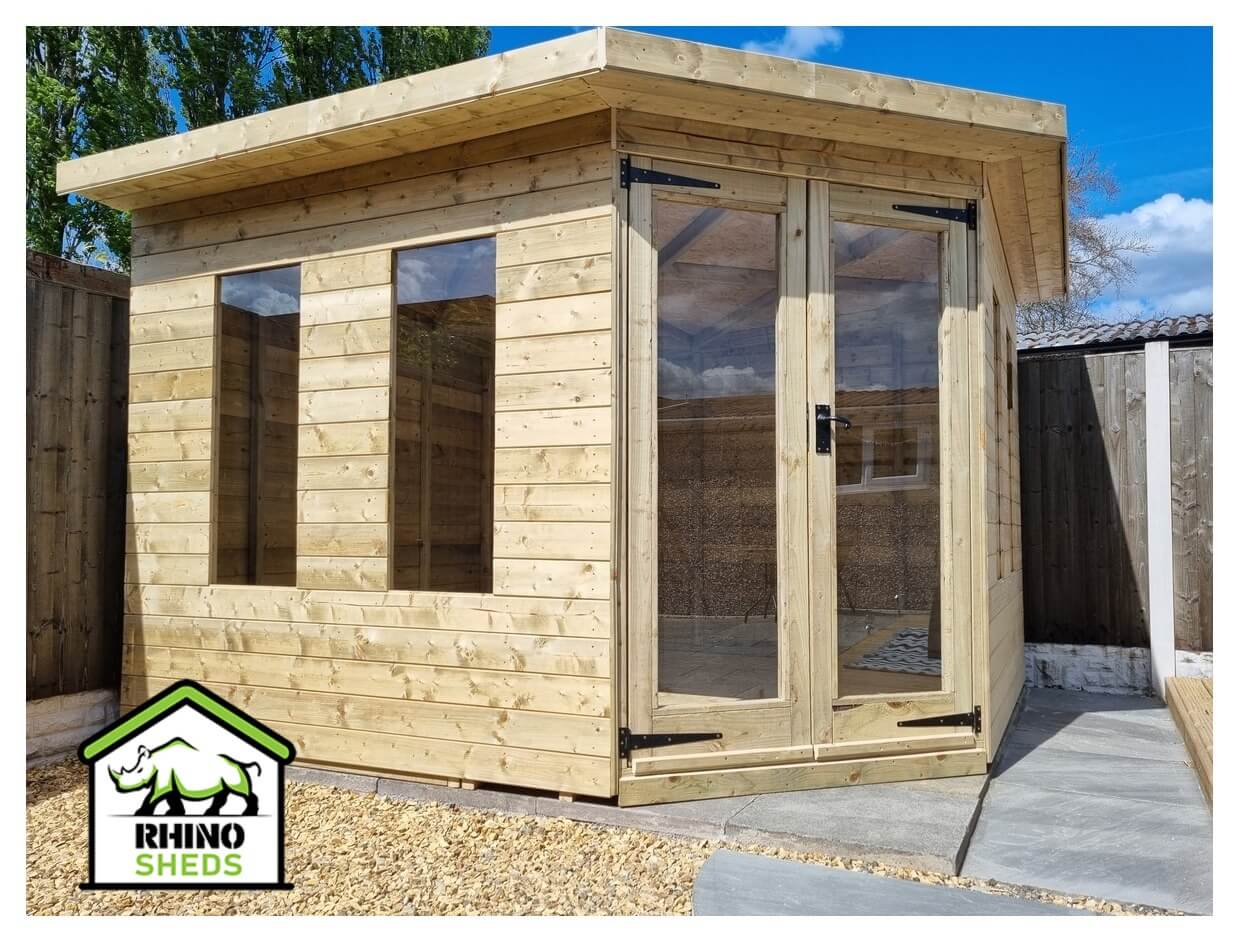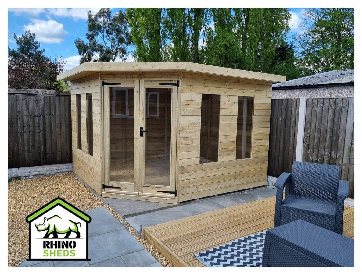The 8x8 corner summer house is constructed by our team of expert craftsmen using only the highest quality timber.
